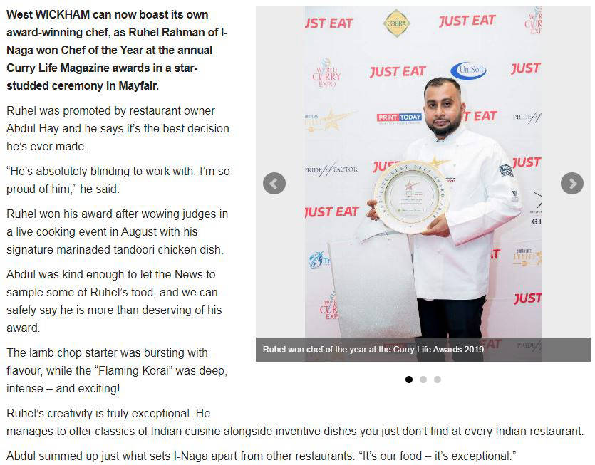Using only the finest freshest ingredients, our flavorsome menu takes you back to the wonderful cookery of traditional Indian recipes blended to a modern taste ensuring every mouthful at iNaga Restaurant is an absolute culinary delight
